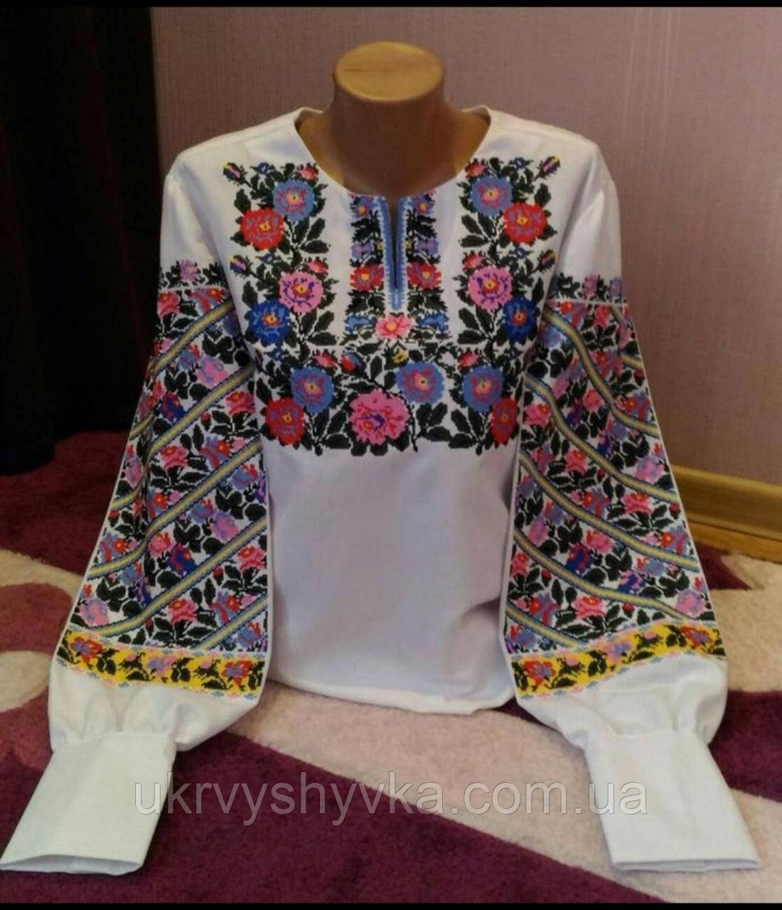 Вишиванка з повністю розшитими квітковими рукавами не залишить байдужими нікого. Багатство квітів та яскравість кольорів вражає. Від вишивки не можливо відірватись.