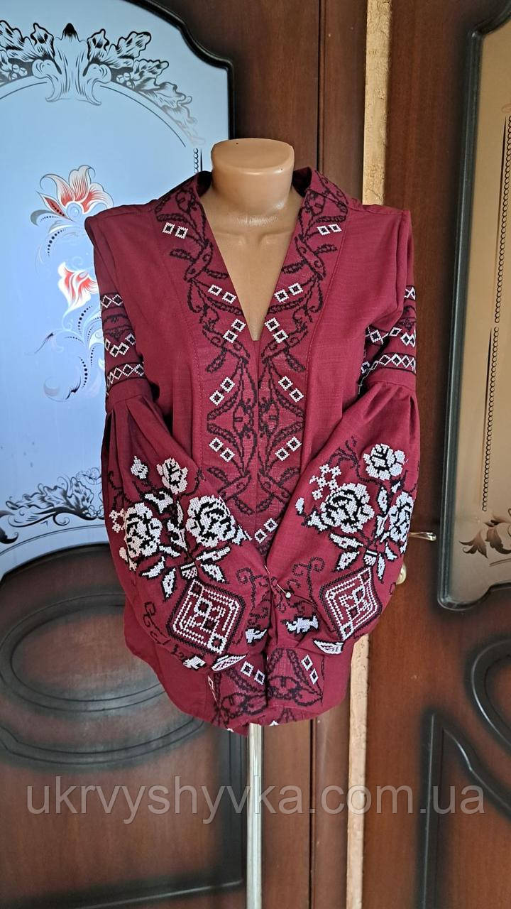 Красива і стильна жіноча вишиванка в стилі бохо з довгими рукавами.