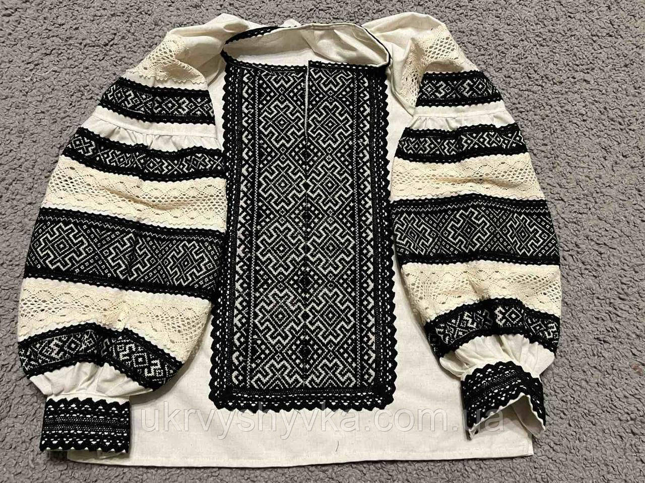 Тканина - льон, вставки з ручної вишивки низинкою та вставки з натурального мережива.