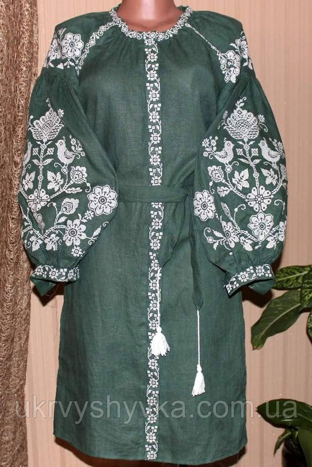 Тканина — льон, машинна вишивка гладдю.